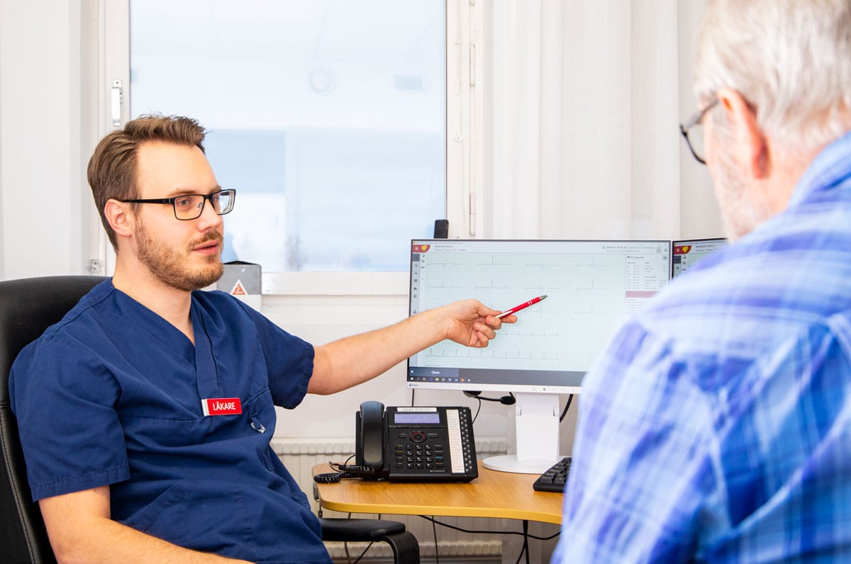 En läkare är någon som praktiserar medicin, vilket innebär att undersöka, behandla och stödja dig i din hälsa och ditt mående. Efter avlagd examen kan läkaren påbörja sin allmäntjänstgöring, en 18 till 24 månader lång utbildningstjänst. Flertalet läkare fortsätter därpå med en specialisttjänstgöring, vilket omfattar kurser och cirka 5 års planerad tjänstgöring som så kallad ST-läkare, följt av ansökan om specialistbevis. Hos oss finns läkare på alla nivåer i utbildningsprocessen.