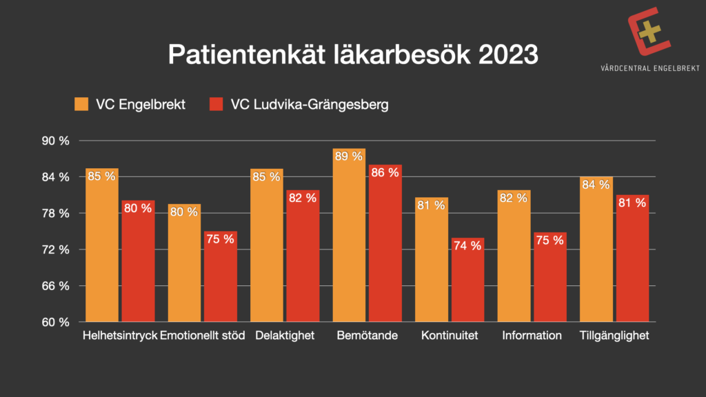Hos oss är patienterna nöjdare med sina läkarbesök jämfört vid Ludvikas största Vårdcentral, enligt Nationell Patientenkät, NPE. Nationell Patientenkät är ett samlingsnamn för återkommande nationella undersökningar av patientupplevelser inom hälso- och sjukvården. Vi är är väldigt stolta över att kunna leverera en god vård tillsammans med, och för våra patienter! Om du vill läsa mer följer du den här länken.