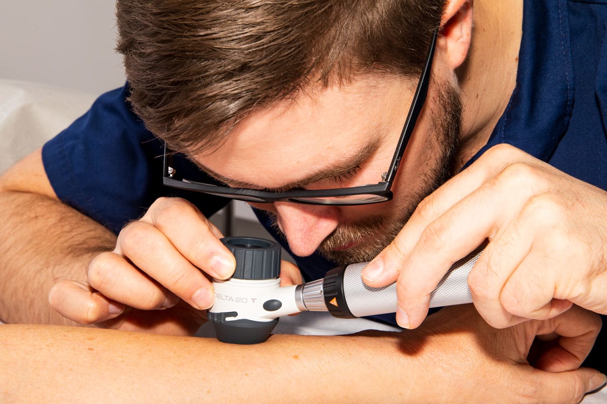 Våra särskilt hudintresserade läkare kan hjälpa dig att kontrollera för hudcancer. Vid misstanke om hudcancer kan vi ofta avlägsna förändringen på vårdcentralen. Våra undersköterskor kontrollerar därefter att såret läker ordentligt och avlägsnar eventuella stygn.